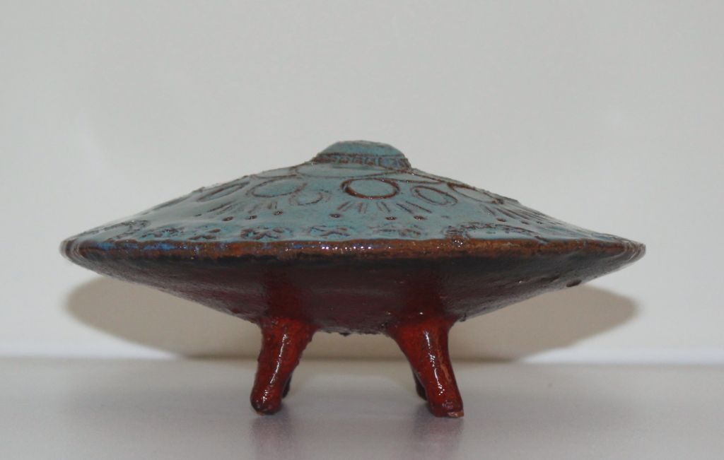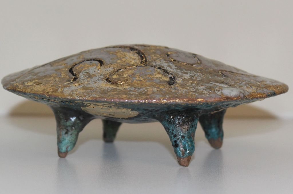 The UFO series was made in 2014. It began with the idea of exploring the juxtaposition of ancient artefacts with futuristic technology. The contemplation of archeology, time travel, unknown origin, lost civilisations, sacred geometry and interstellar exploration were all part of my research and response through the work.